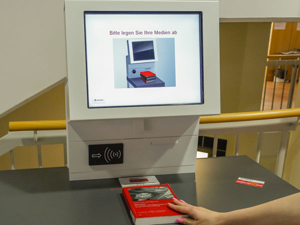 Sie können bis zu maximal vier Bücher auf den Lesepunkt des Automaten auflegen. Die Ausleihverbuchung erfolgt sofort.
